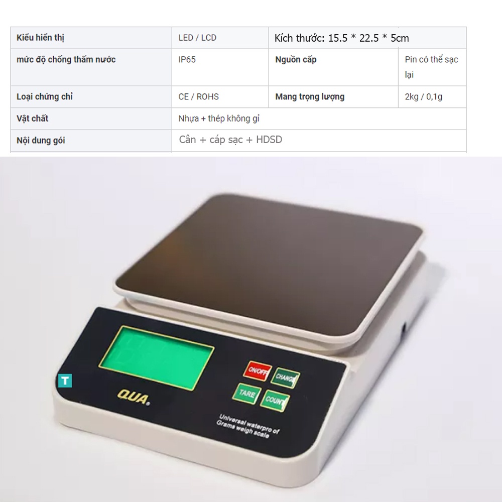 Giới thiệu Cân tiểu ly điện tử nhà bếp dùng pin sạc chịu nước chính hãng QUA, Cân chống nước chuyên dùng thủy sản, nhà hàng -KHALIK