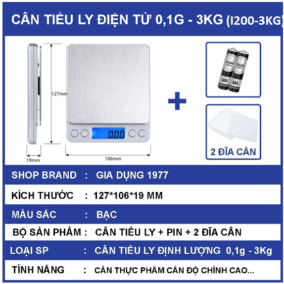 Thông tin chi tiết sản phẩm Cân tiểu ly điện tử nhà bếp mini định lượng 1g - 5kg:
