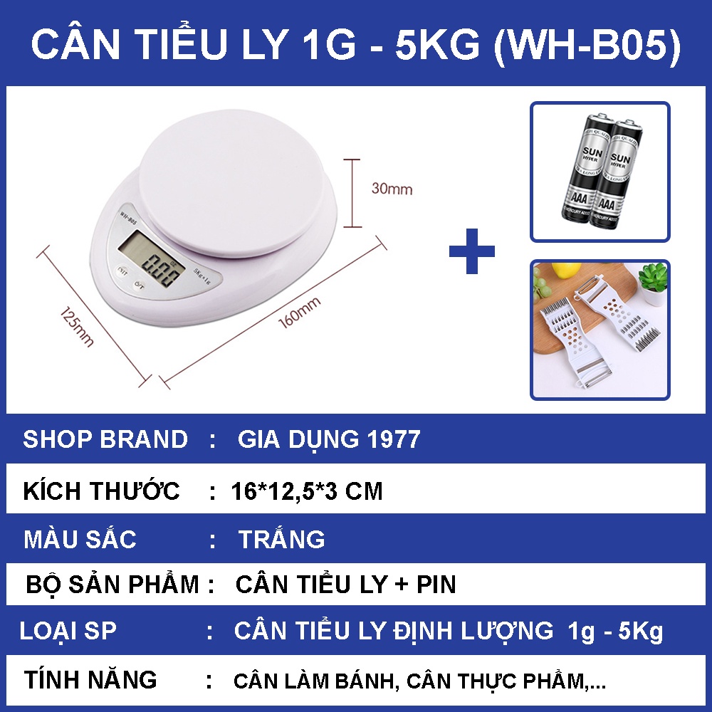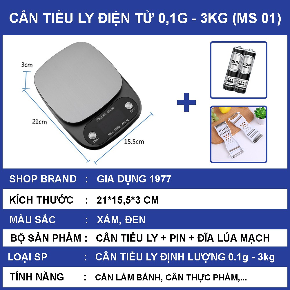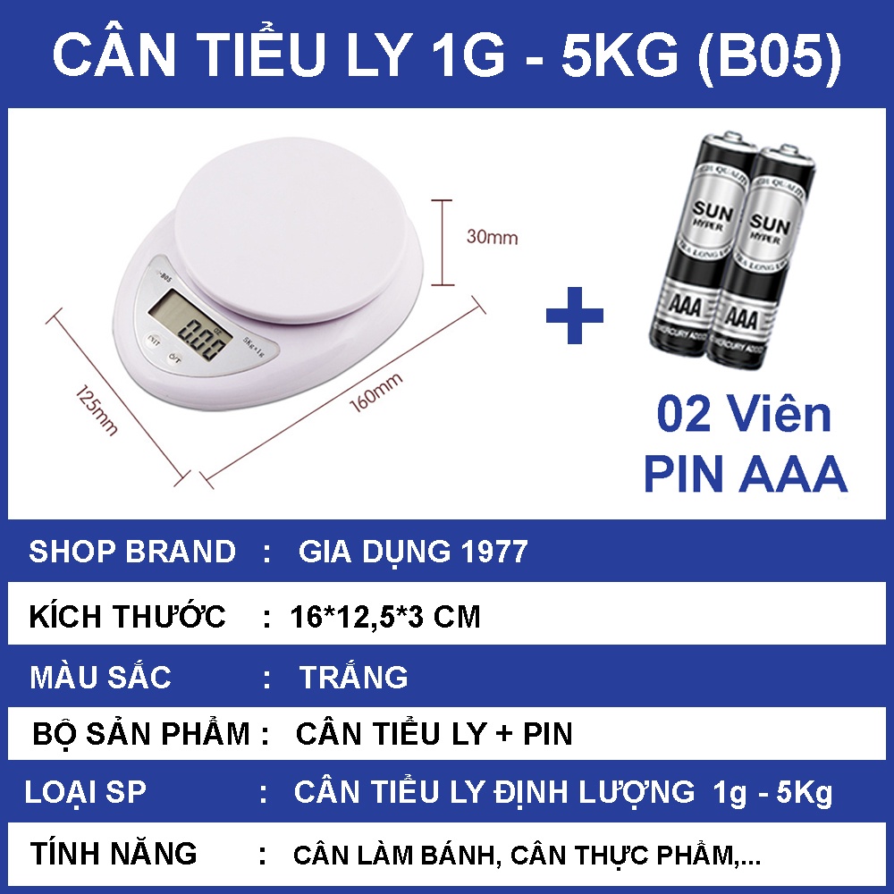 Thông tin chi tiết sản phẩm Cân tiểu ly điện tử nhà bếp mini định lượng 1g - 5kg:
