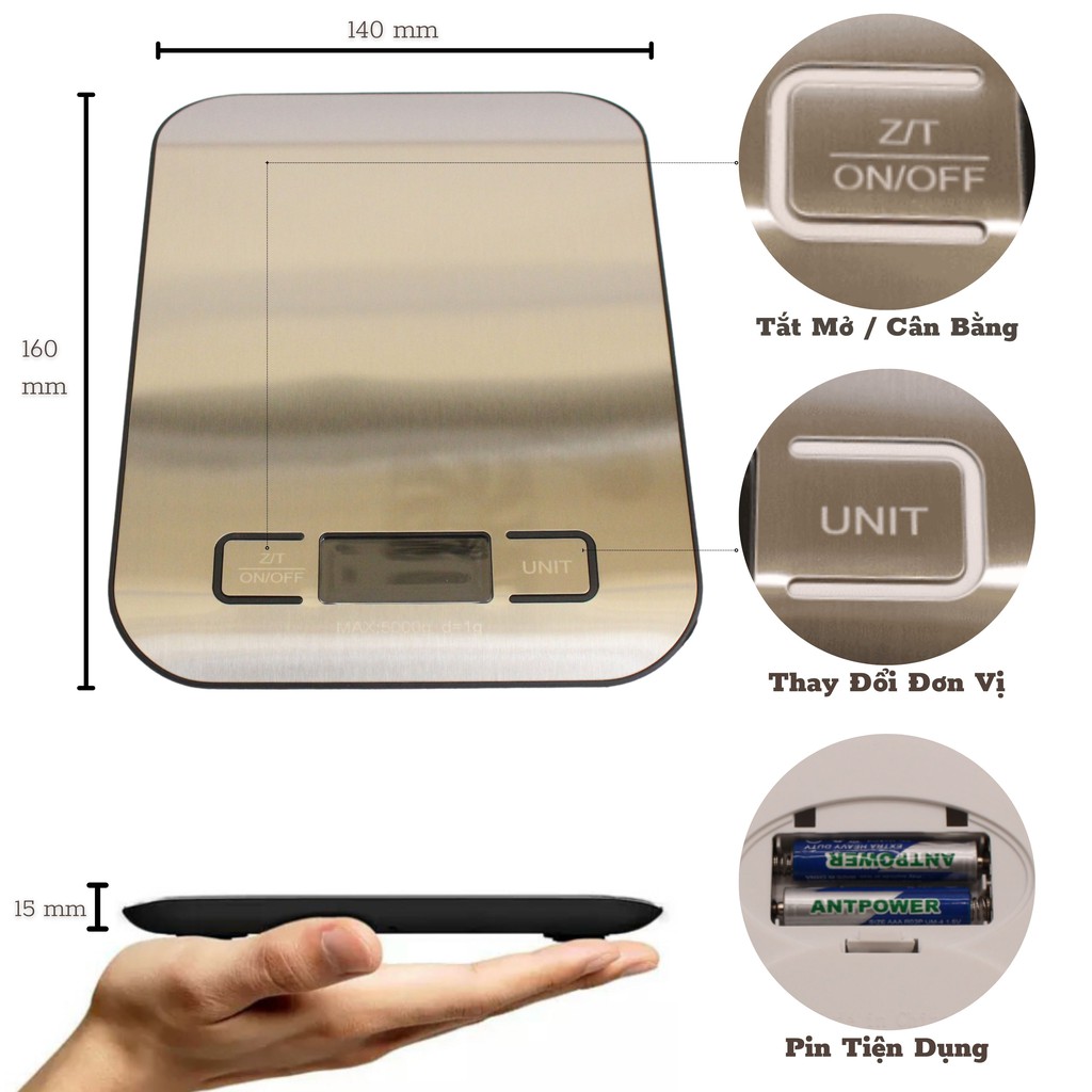👉 Độ chính xác cao. Thích hợp sử dụng trong nhà bếp cân thực phẩm gia vị