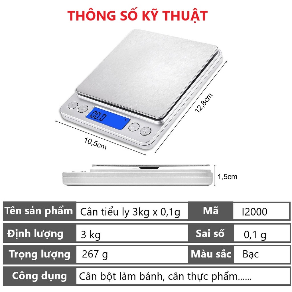 Giới thiệu Cân tiểu ly điện tử nhà bếp mini làm bánh 5kg, Cân tiểu li cao cấp độ chính xác cao tặng kèm pin