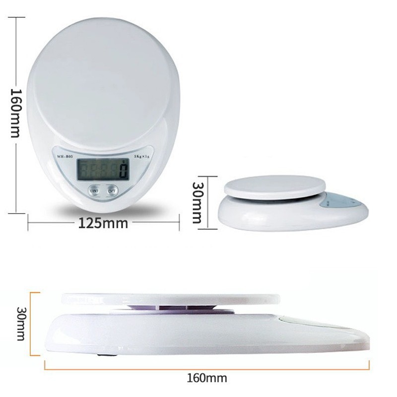 Cân tiểu ly điện tử nhà bếp mini cân định lượng thực phẩm từ 1 gam - 5kg (Tặng kèm 2 pin),