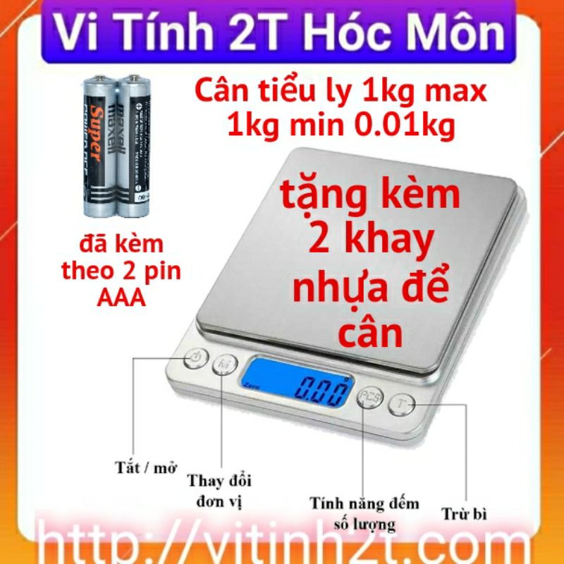 Cân Tiểu Ly Điện Tử Platform 1Kg ,(Tặng 2 Khay Nhựa), Cân Điện Tử Mini Inox I-2000