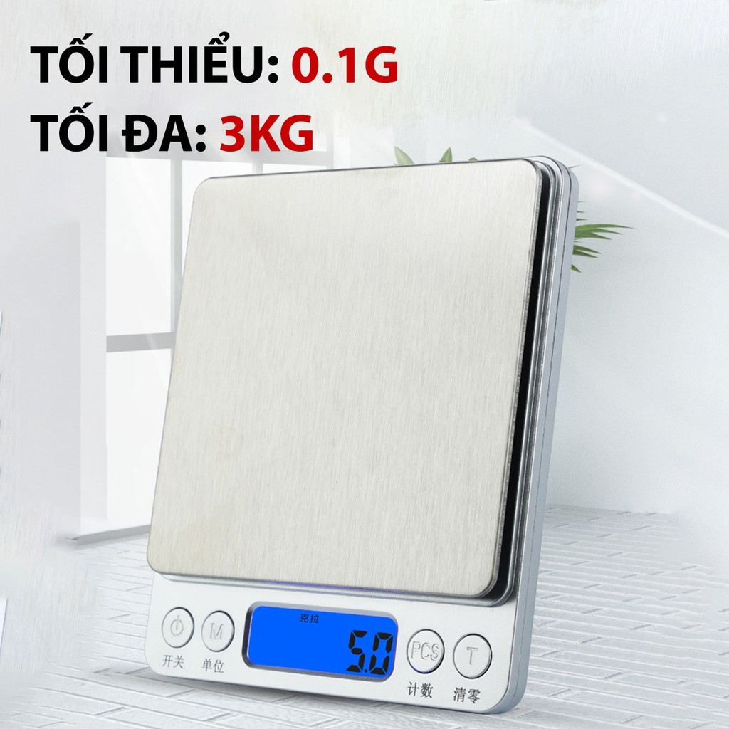 Cân tiểu ly li điện tử nhà bếp mini định lượng thực phẩm 0.1g tới 3kg (Tặng kèm 2 pin), làm bánh, gia vị