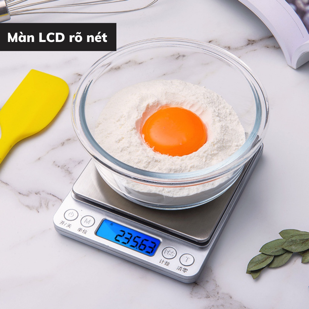 Cân tiểu ly mini điện tử định lượng 0,1-2kg làm bánh nhà bếp nhỏ gọn thiết kế thông minh tặng 2 viên pin AAA và mặt cân