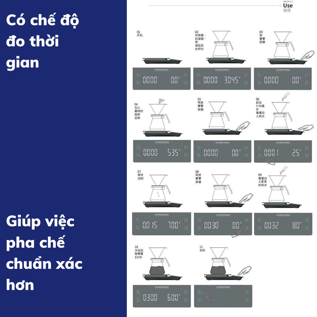 Cân tiểu ly pha cà phê có bộ đếm giờ EK6012 cân tiểu li pha cafe định lượng 0,1g-3kg độ chính xác cao tặng kèm pin AAA