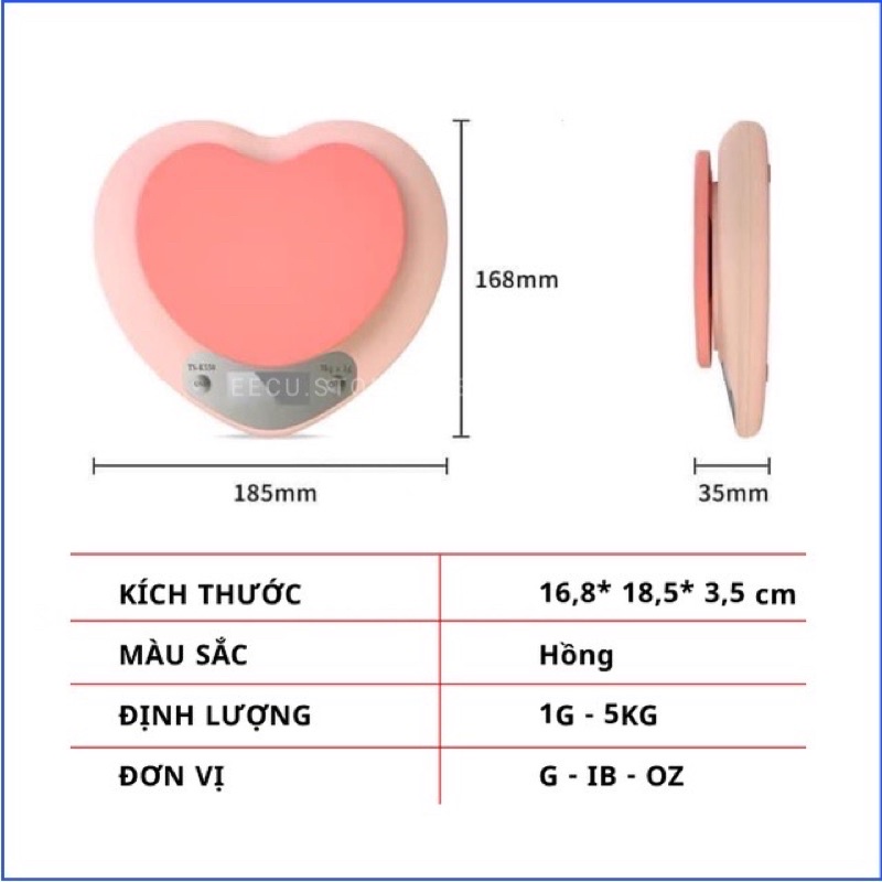 Giới thiệu CÂN TIỂU LY TIM HỒNG 1KG - 5KG