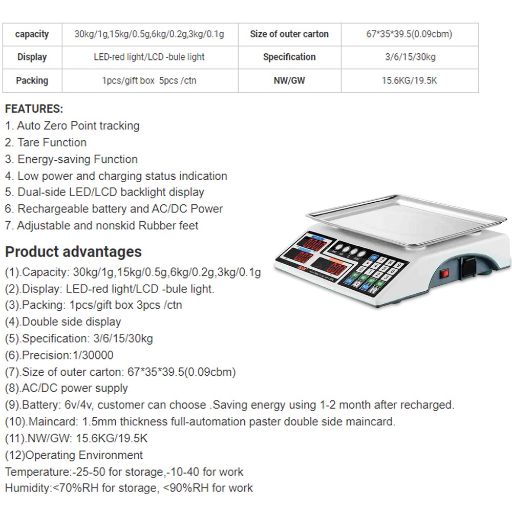 ✅Đặc điểm nổi bật Cân điện tử tính tiền 30kg 2 mặt QUA 810: