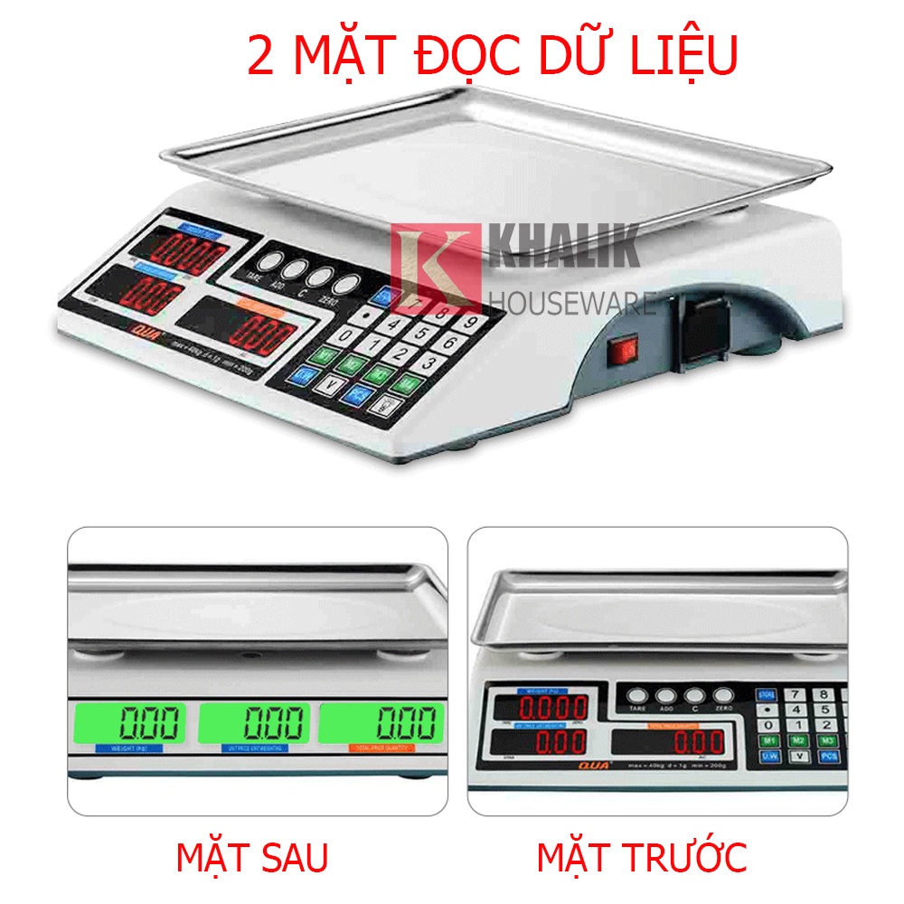 Cân điện tử tính tiền 30kg 2 mặt QUA 810 Cao Cấp – Cân siêu thị có độ chính xác cao nhà hàng, siêu thị, bán hàng chợ⏩KHALIK xin giới thiệu bạn sản phẩm Cân điện tử tính tiền 30kg 2 mặt QUA 810 - chiếc cân chuyên dụng cho các nhà bán hàng siêu thị, đại lý, tạp hóa....