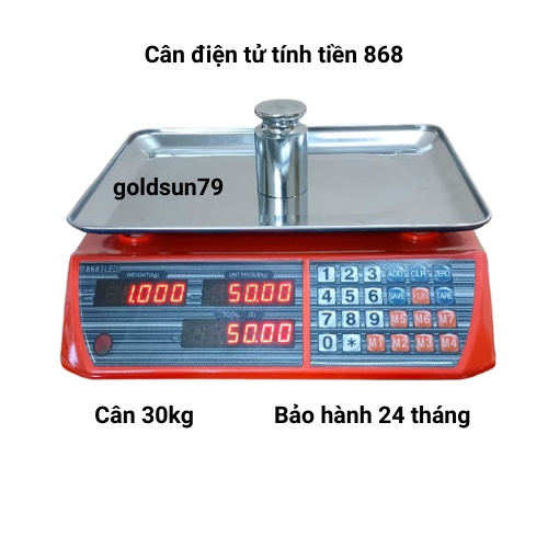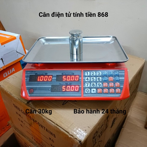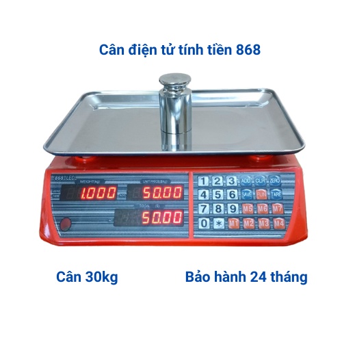 Cân tính tiền điện tử (868) mặt cân được làm bằng inox dày sáng bóng ( bảo hành 2 năm )trọng lượng cân tối đa : 30kg