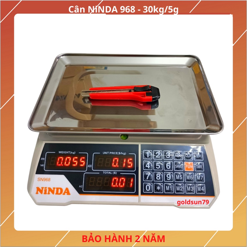 Giới thiệu cân tính tiền điện tử NiNDA 968 ( 30Kg/5g ) mặt cân được làm bằng inox sáng bóng ( bảo hành 24 tháng )