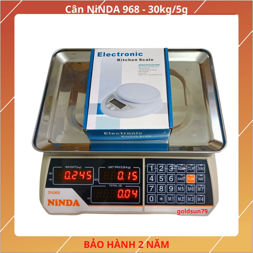 cân tính tiền điện tử NiNDA 968 ( 30Kg/5g ) mặt cân được làm bằng inox sáng bóng ( bảo hành 24 tháng )