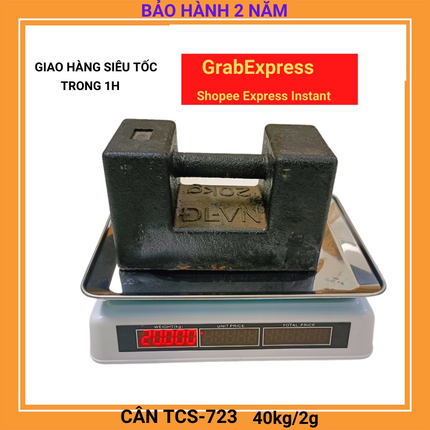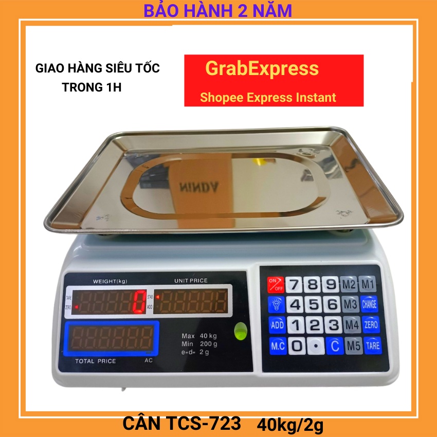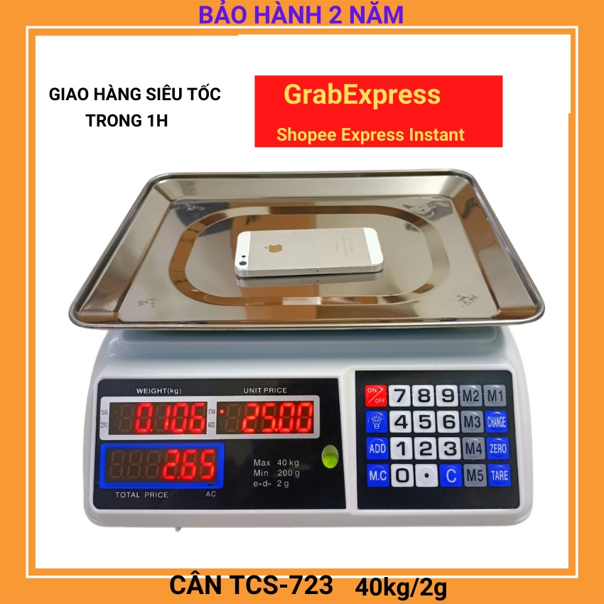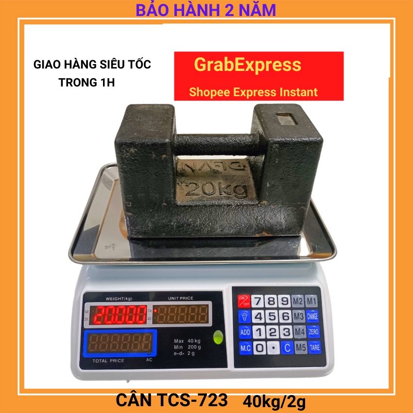 Cân tính tiền điện tử TCS-723 ( 40kg/2g ) dùng cho bán hàng hoa quả,thực phẩm ( BẢO HÀNH 24 THÁNG )trọng lượng cân tối đa : 40kg