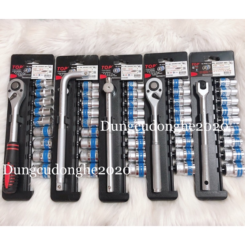 Bộ Tuýp 10 Món 1/2 Cần Tự Động TOP bao gồm 1 cần tự động đầu vuông ½ và 9 đầu tuýp: 8, 10, 12, 13, 14, 17, 19, 21, 24mmBộ Tuýp 10 Chi Tiết TOP Cần Tự Động (Cán Bọc) bao gồm 1 cần tự động cán bọc 1 lớp cao su mềm tuỳ đợt hãng về cán bọc màu ĐEN ĐỎ hoặc ĐEN XANH và 9 đầu tuýp 1/2" gồm: 10, 11, 12, 13, 14, 17, 19, 22, 24mm.