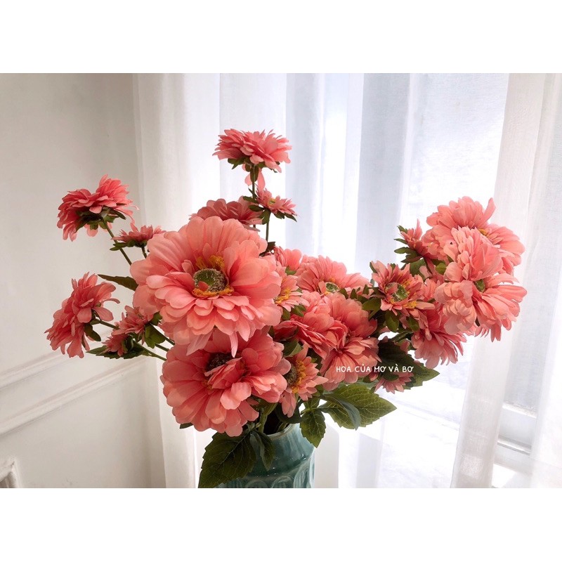 Cành 3 Bông Hoa Cúc Giả Cao Cấp Màu Vàng/Cam/Đỏ/Trắng/Hồng/Tím Hồng Có 3 Nụ Hoa Phù Hợp Decor Trang Trí Nhà
