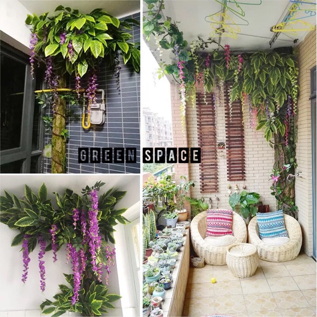 cành lá được sử dụng với nhiều mục đích trang trí như làm cây giả, trang trí tường cỏ nhựa, trang trí biển quảng cáo, làm phông nền chụp ảnh, trang trí studio, đạo cụ chụp ảnh