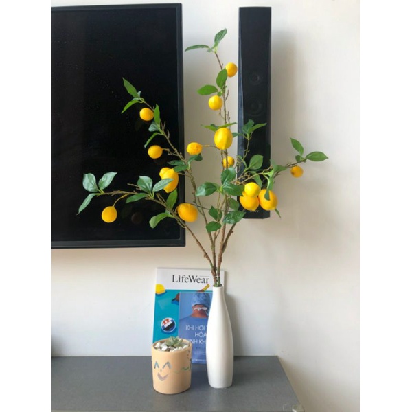 Bạn chỉ cần 1 bình cành chanh giả chín vàng cũng đủ làm căn phòng, không gian trở nên thu hút mà không cần phải tiếc nuối vì sợ chanh sẽ nhanh bị hỏng như chanh thật. Một lần đầu tư và sử dụng trang trí mãi mãi.
