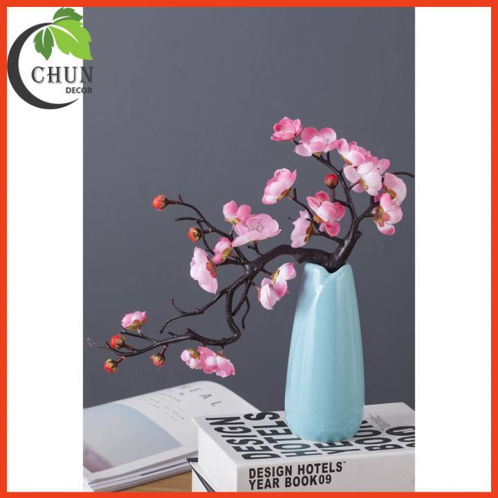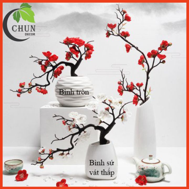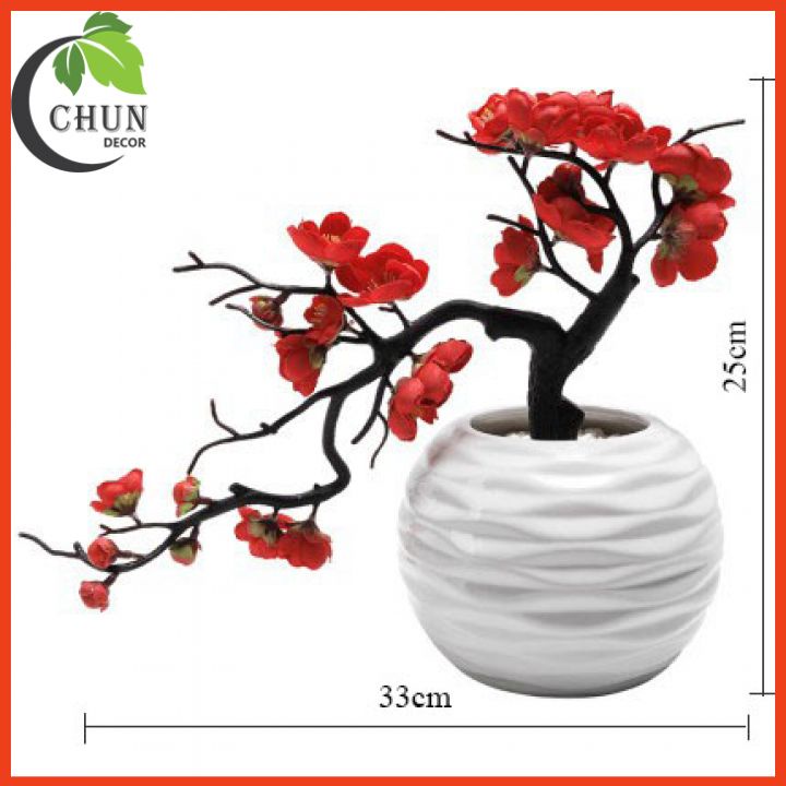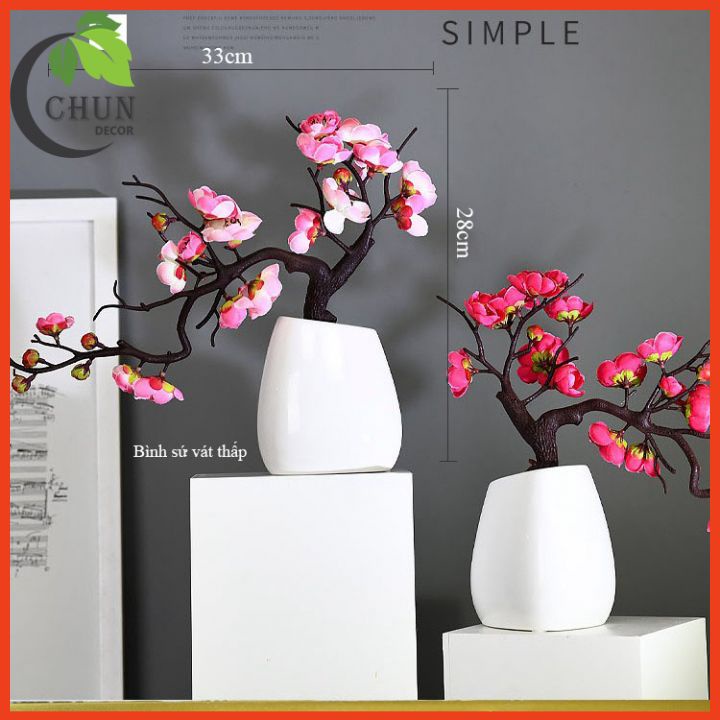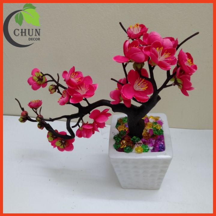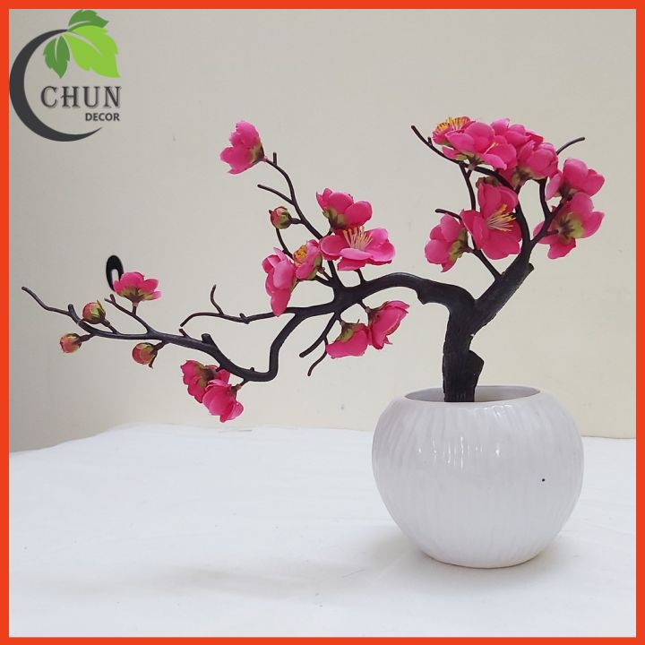 Nhà cửa & Đời sống > Trang trí nhà cửa > Hoa trang trí || Cành đào bon sai, chậu đào nhân tạo để bàn, kệ tủ, giá sách dáng thác đổCòn hàng