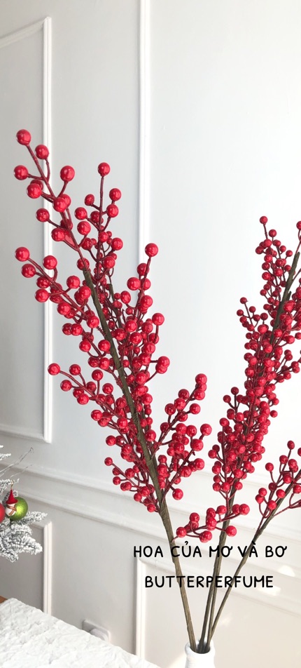 Thân cành dài với 12 nhánh nhỏ, giúp cho bạn dễ dàng uốn và tạo dáng với bình hoa, một cảm giác thực sự thú vị. Hạt đào đông làm bằng xốp, phủ lớp silicon đỏ bên ngoài tạo cảm giác chân thật.
