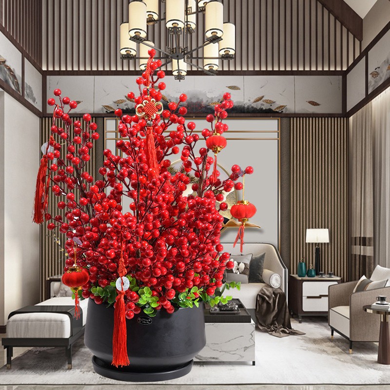 Cành Chery/ đào đông nhiều nhánh nổi bật với những chùm quả đỏ giúp cho không gian của bạn trở nên tươi vui, ngập tràn không khí.