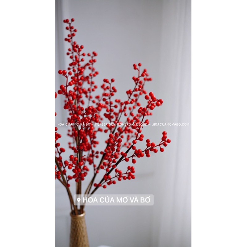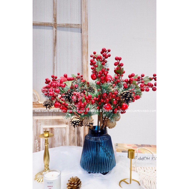 Cành Chery/ đào đông nhiều nhánh nổi bật với những chùm quả đỏ giúp cho không gian của bạn trở nên tươi vui, ngập tràn không khí NOEL - Giáng sinh - năm mới.