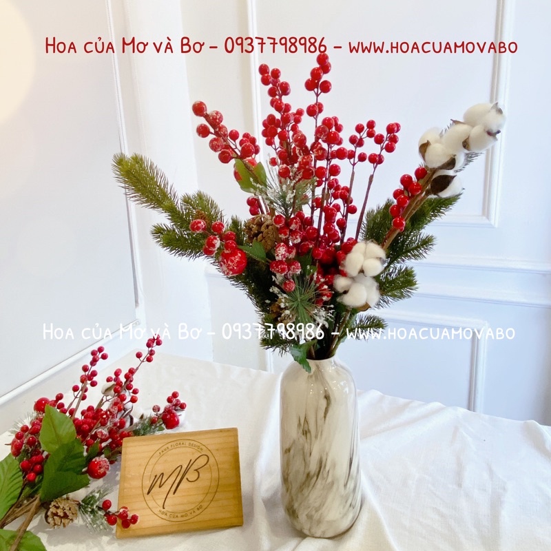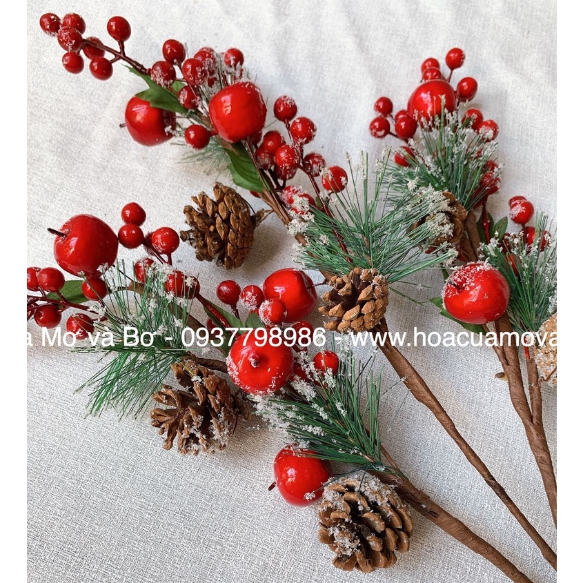 Cành đào đông cherry, cành quả thông, cành bông gòn khô trang trí Giáng SinhNhà Bơ hiện có 5 loại:
