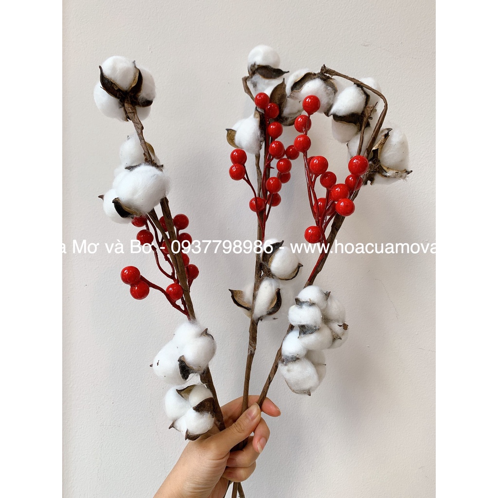 Giới thiệu Cành Đào Đông Cherry Merber (Mơ & Bơ) Loại Cành Quả Bông Gòn /Thông - Cành Khô Trang Trí Decor Giáng Sinh, Noel, Năm Mới