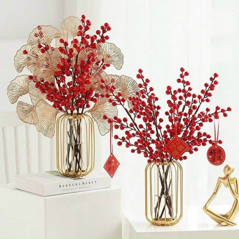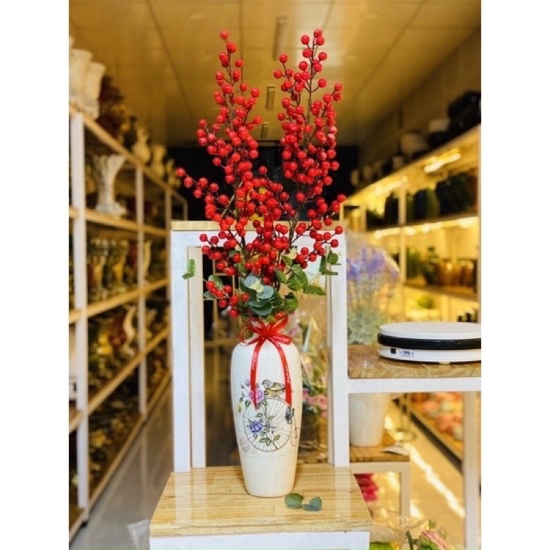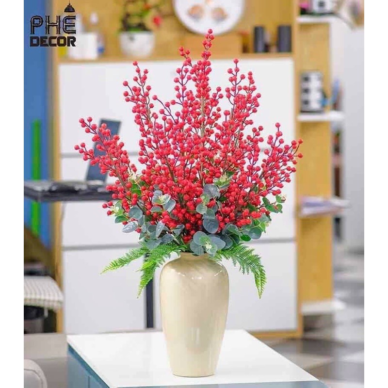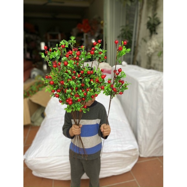 - Thân cành dài với nhiều nhánh nhỏ, giúp cho bạn dễ dàng uốn và tạo dáng với bình hoa, một cảm giác thực sự thú vị. Hạt đào đông làm bằng xốp, phủ lớp silicon đỏ bên ngoài tạo cảm giác chân thật.