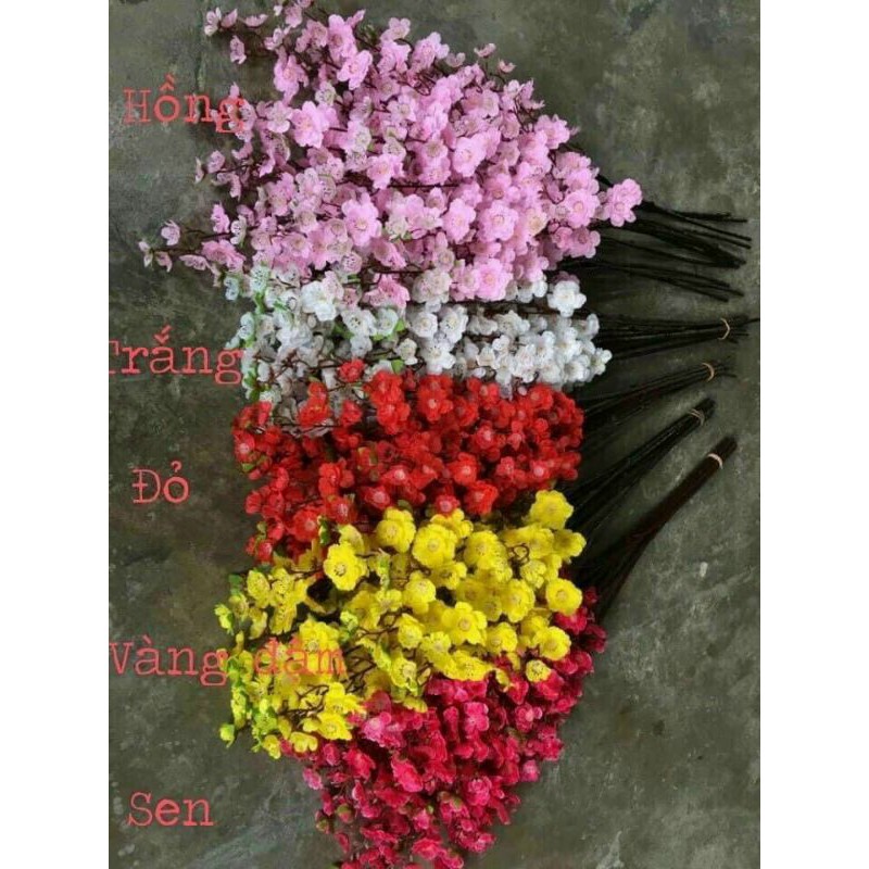 Shop có 5 màu đào,mai khách nhé. Khách chọn màu ib cho shop hoặc chọn từng màu cho vào giỏ hàng rồi đặt hàng cũng được ạLoại cành lớn dài 1m nha khách