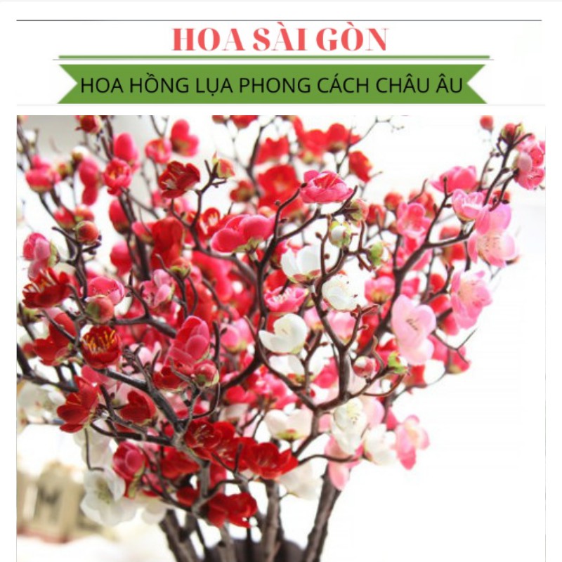 Giới thiệu Cành đào giả trang trí nội thất, tiểu cảnh, sân vườn chất liệu lụa