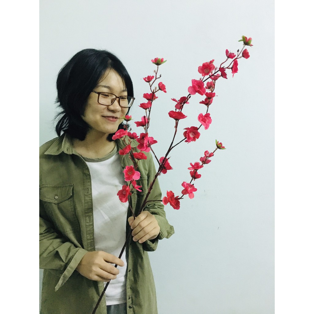 Một Cành đào,mai giả làm cây trang trí tết hàng đẹp dài 1m có 5 nhánh