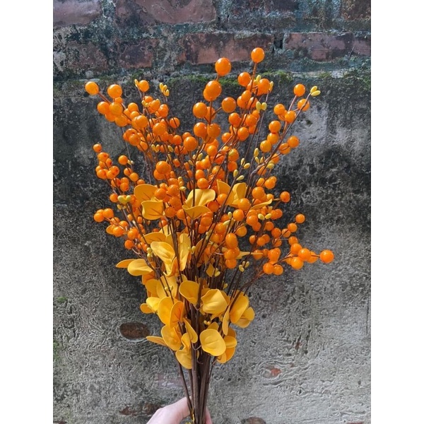 - 👉 Chất liệu: quả làm bằng cao su xốp phủ bóng nên rất giống thật, lá chất liệu cao su cao cấp, siêu bền với thời gian. Cành có thể uốn nắn theo sở thích.