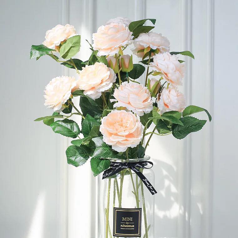 - Cành mẫu đơn 3 bông trang trí nội thất cao cấp