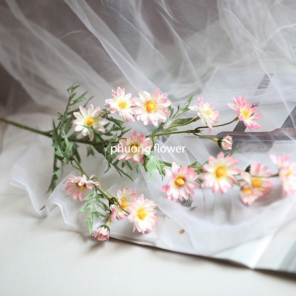 Nhà cửa & Đời sống > Trang trí nhà cửa > Hoa trang trí || Cành hoa cúc họa mi giả hoa bằng vải lụa loại 17 bông hoa cành dài 75cm nhiều nhánh và lá cắm bình trang trí rất đẹpCòn hàng