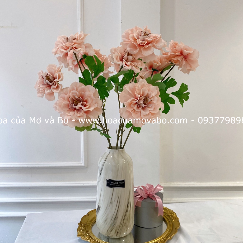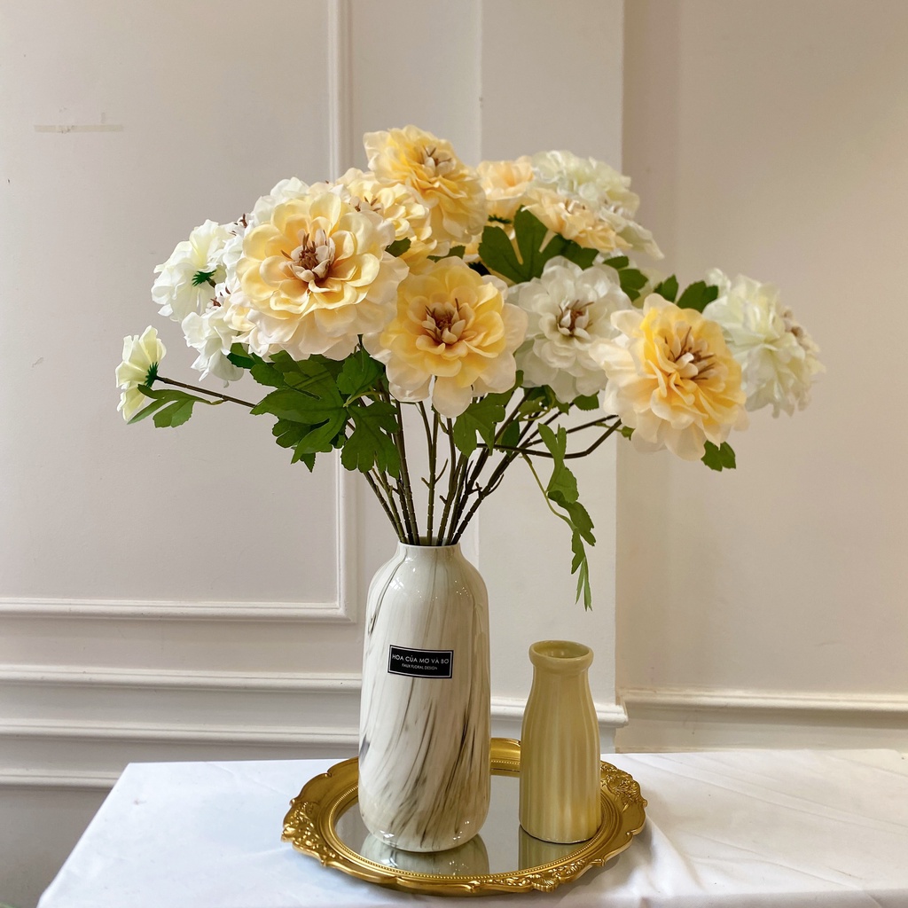 Cành Hoa Cúc Thược Dược Cao Cấp Merber Loại 3 Bông Nở - Hoa Giả Decor Trang Trí Chụp Ảnh