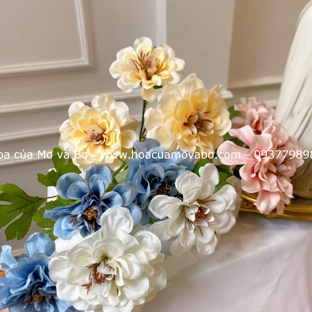 Giới thiệu Cành Hoa Cúc Thược Dược Cao Cấp Merber Loại 3 Bông Nở - Hoa Giả Decor Trang Trí Chụp Ảnh