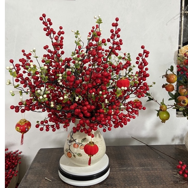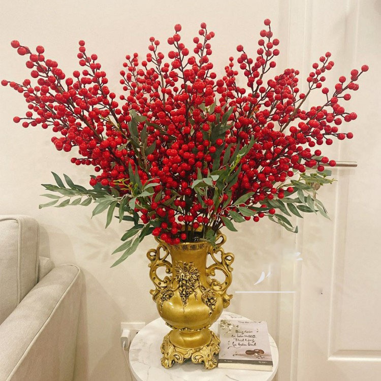 Thân cành dài với 12 nhánh nhỏ, giúp cho bạn dễ dàng uốn và tạo dáng với bình hoa, một cảm giác thực sự thú vị. Hạt đào đông làm bằng xốp, phủ lớp silicon đỏ bên ngoài tạo cảm giác chân thật.