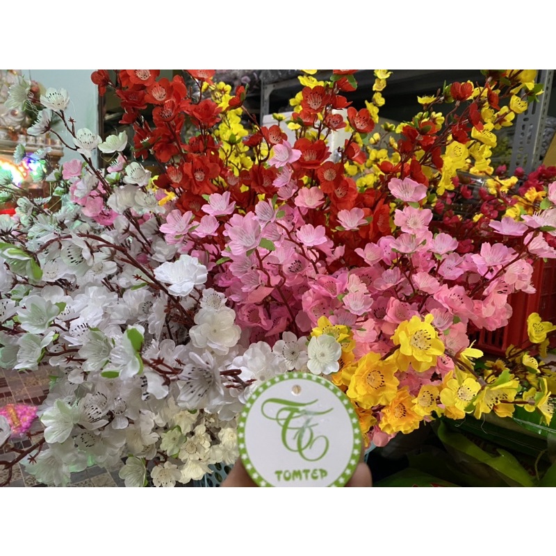 cành hoa đào hoa mai giả dài 1m có 5 nhánh nhỏ giá sỉ tại xưởng sx