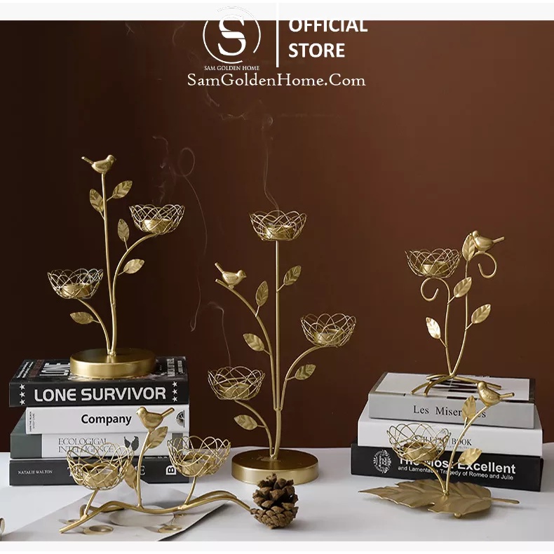 Giới thiệu Cành Hoa Để Nến Trang Trí Bàn Làm Việc Vàng Gold Sang Trọng