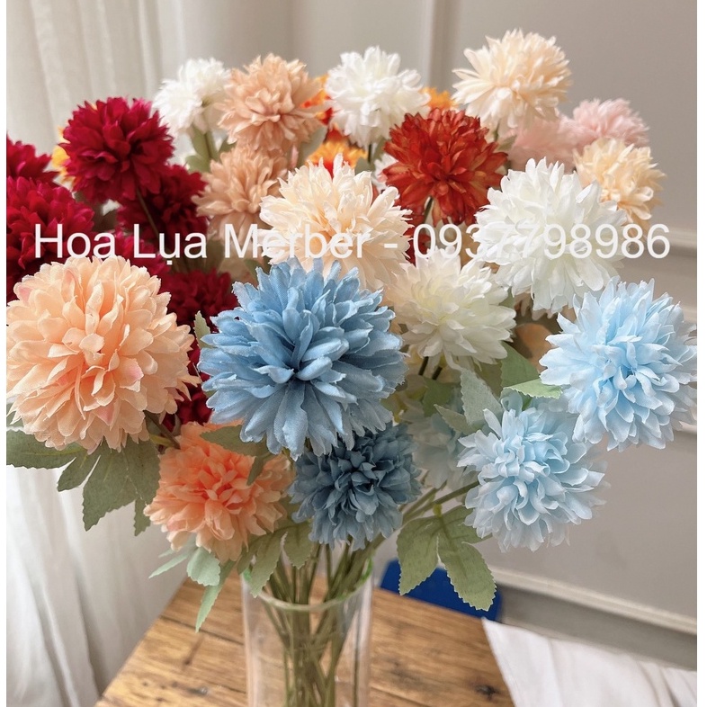 Nhà cửa & Đời sống > Trang trí nhà cửa > Hoa trang trí || Cành Hoa Giả PingPong 3 Bông Cao Cấp 56cm Merber (Mơ Bơ) - Trang Trí Decor Nhà CửaCòn hàng