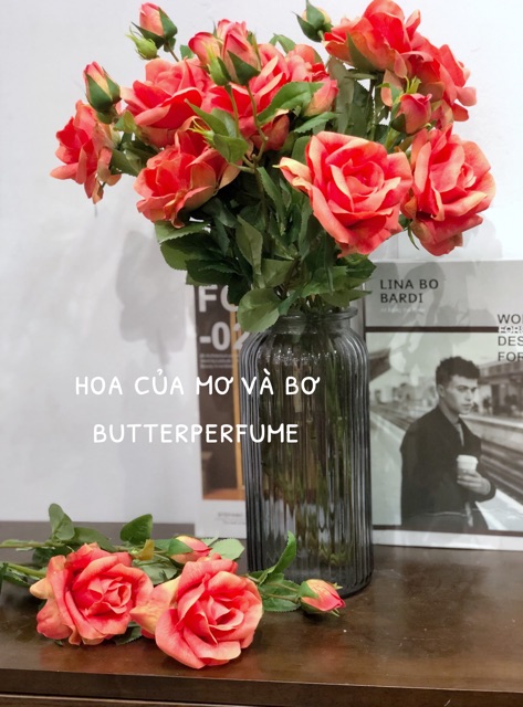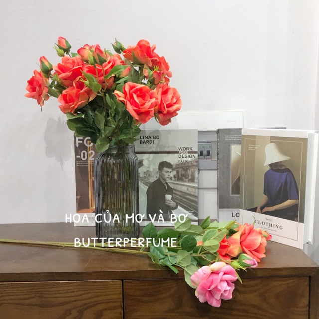 Size hồng: cành dài 65cm, có 1 bông 1 nụCó 4 màu: hồng nhạt - hồng đậm - cam - vàng
