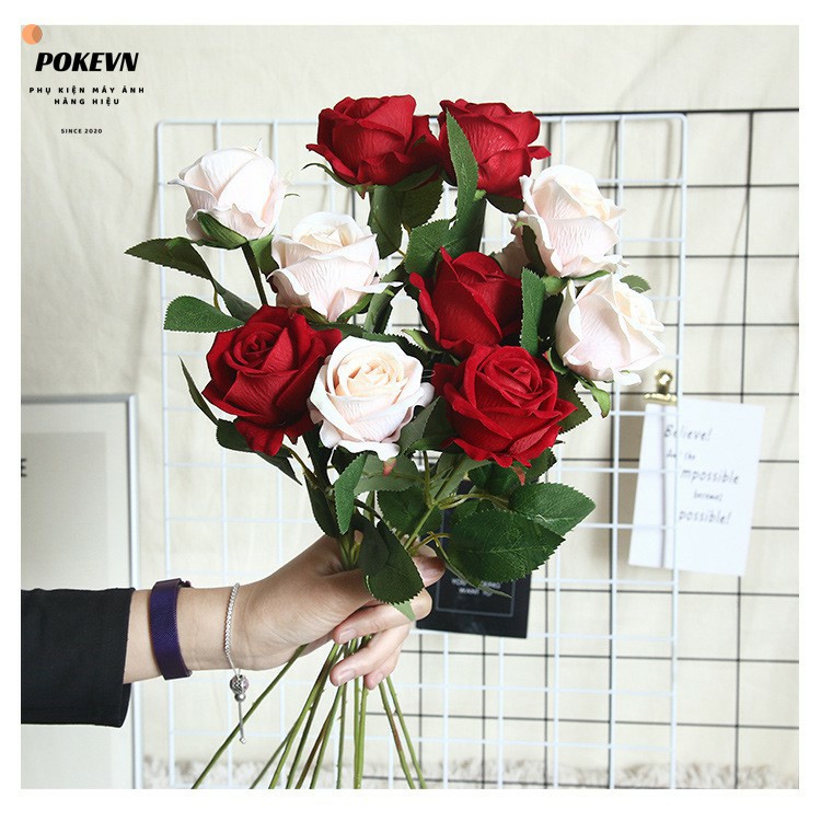 Giới thiệu Cành hoa hồng giả decor chụp ảnh và trang trí nhà cửa