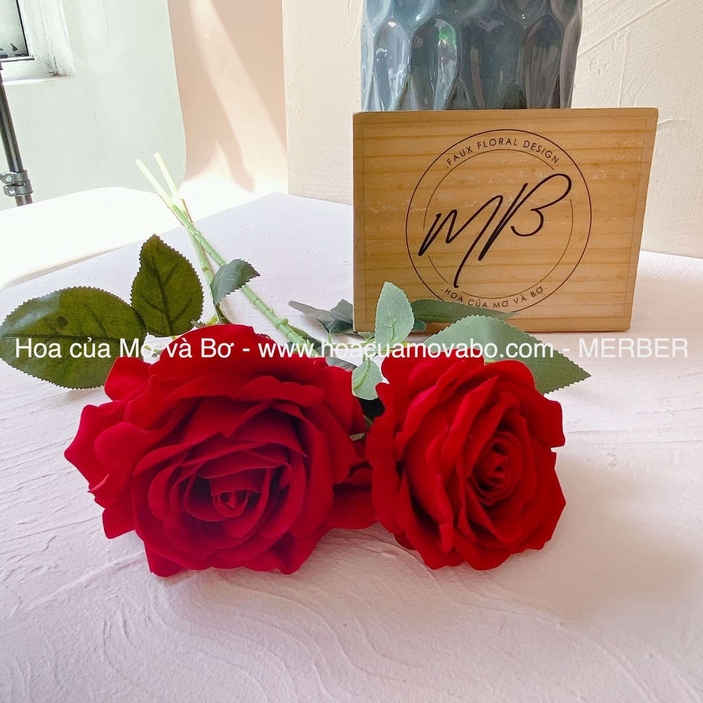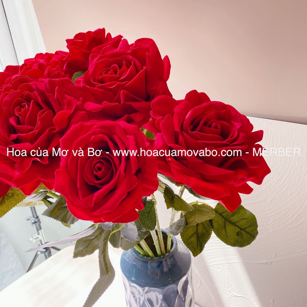 Cành Hoa Hồng Nhung Lụa Cao Cấp Merber Bông 12cm Cành Dài 70cm - Bông Hồng Giả Phù Hợp Làm Đồ Decor Trang Trí Nhà Cửa