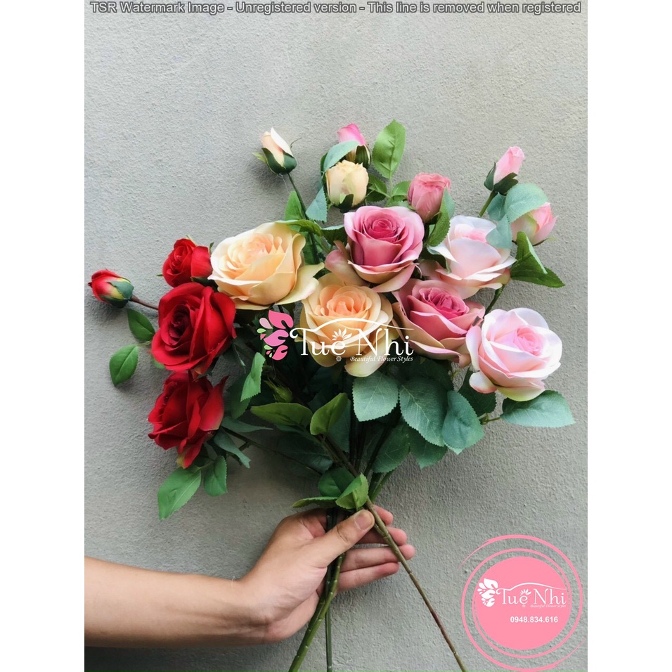 Giới thiệu Cành Hoa Hồng Pháp ,Cành 2 Bông 2 Nụ Cao Cấp - Hoa Gỉa, Hoa Lụa.