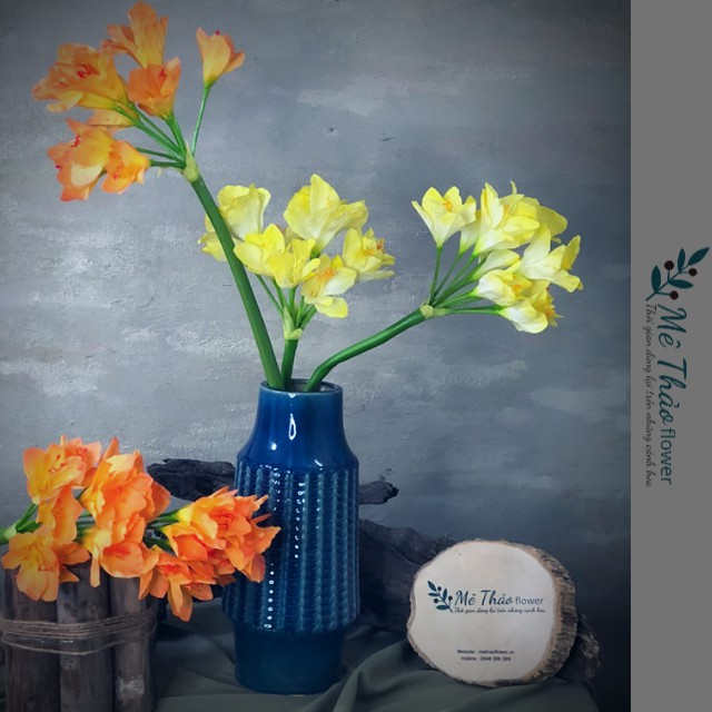 - Chất liệu: bông hoa làm từ cao su dập gân cao cấp như hoa thật. Cành hoa làm từ lõi thép bọc nhực đúc pvc bền bỉ, không sợ gãy dập, thoải mái uốn nắn
