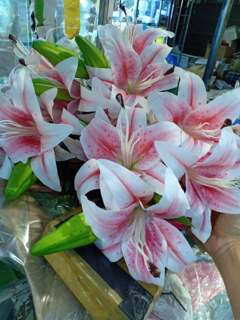 Nhà cửa & Đời sống > Trang trí nhà cửa > Hoa trang trí || Cành Hoa Ly Casu 2 bông 1 nụ-Hoa GiảCòn hàng