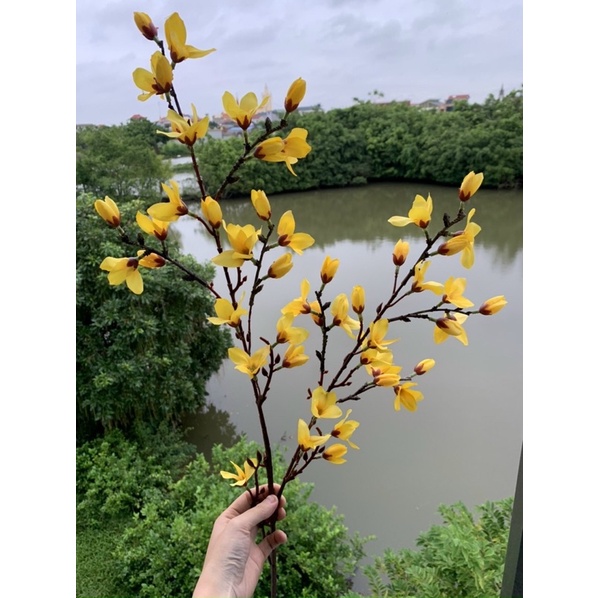 cành hoa mai vàng -Mai Mỹ - thân cổ - cành cao 90cm -hoa lụa - hoa giả trang trí
