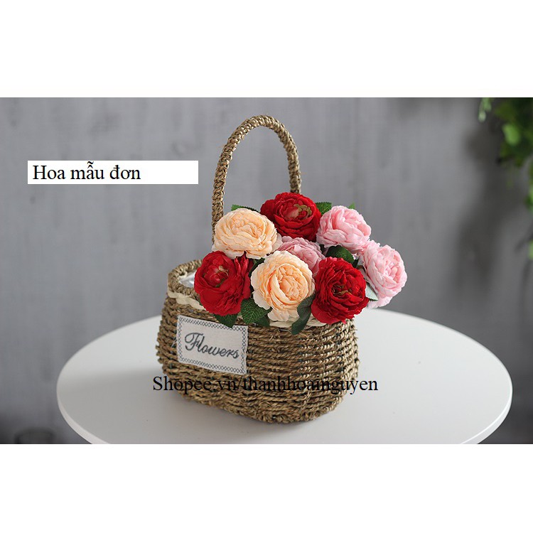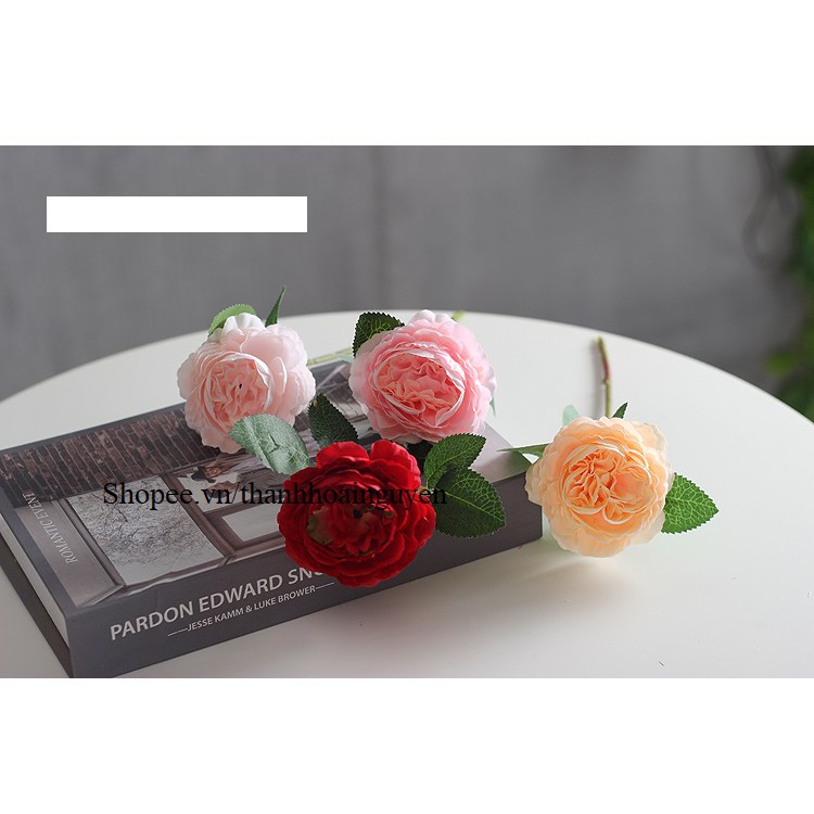 Cành hoa mẫu đơn 1 bông phụ kiện chụp ảnh decor trang trí ( ( hoa hồng giả hoa nhựa )