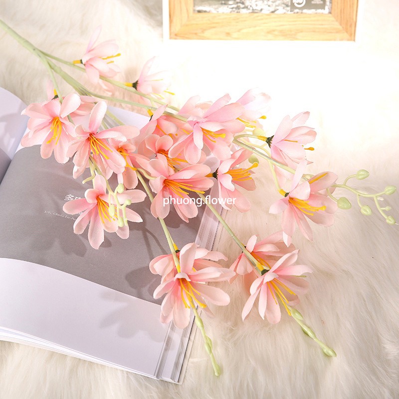 💗Mỗi bông hoa có 10 cánh và nhụy vàng bằng nhựa ở giữa. Đầu các nhánh hoa có nụ hoa làm cho cành hoa rất giống thật