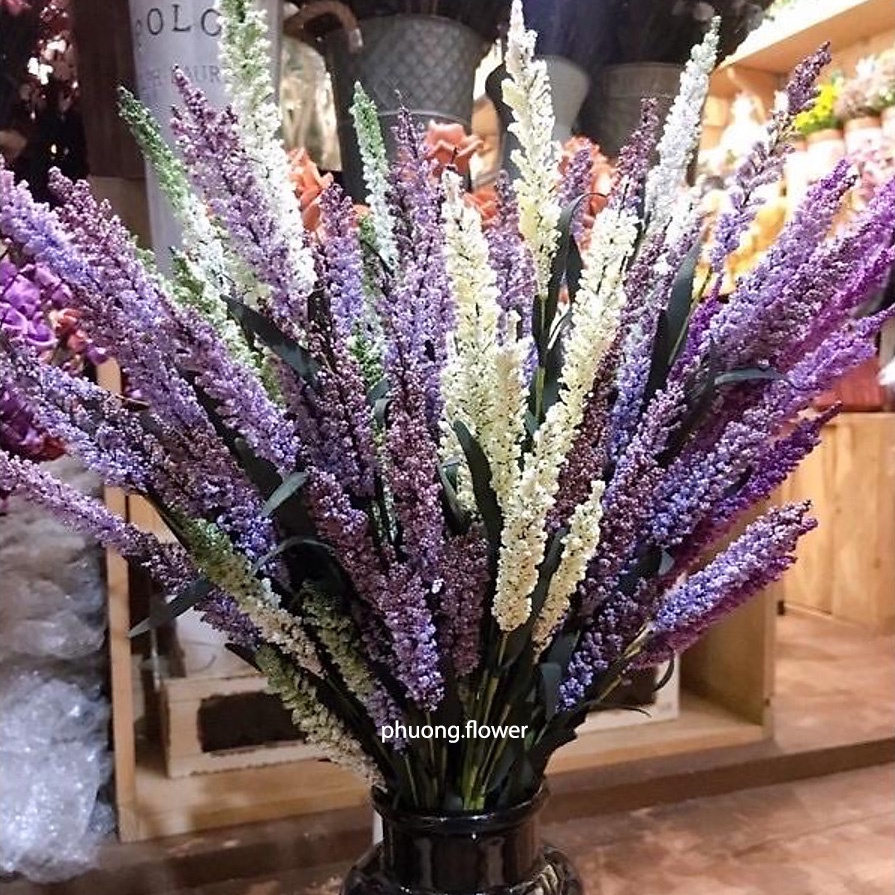 Nhà cửa & Đời sống > Trang trí nhà cửa > Hoa trang trí || Cành hoa oải hương lavender giả nhân tạo dài 60cm 12 hoa loại lá nhọn đậm cắm chậu trang trí tuyệt đẹpCòn hàng